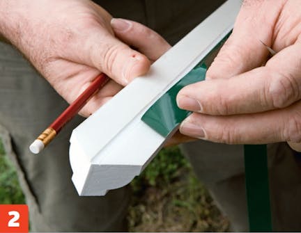 Sahaa ristikoiden osat mittaan. Tee toiseen päähän 45 asteen kulma. Toinen pää saa jäädä suoraksi.
