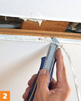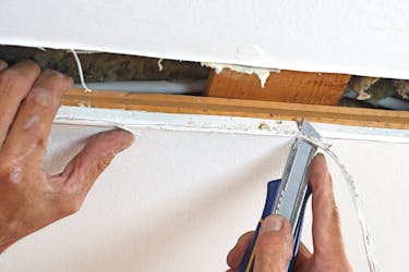Tee kipsilevysuikaleista hieman reikää pienemmät ja ruuvaa ne kiinni koolaukseen. Tee mahdolliset liitokset koolausten kohdalle.