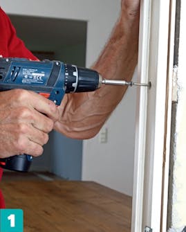 Pura ovilistat ja karmi. Ruuvaa karmi varovasti irti. Jos ovi on naulattu seinään, sahaa naulat poikki karmin ja rungon välistä. Käytä sorkkarautaa vain, jos muut keinot eivät tehoa.