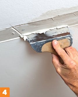 Paina tasoitemassa saumojen pohjaan asti. Lisää tasoitetta 2-3 kertaa ilman välihiontaa, kunnes tasoite on katon pinnan tasolla. Hio pinnat lopuksi.