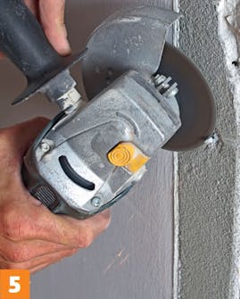 Poista seinistä loput laastit, naulanpätkät ja muut epä-tasaisuudet esimerkiksi pienellä kulmahiomakoneella.
