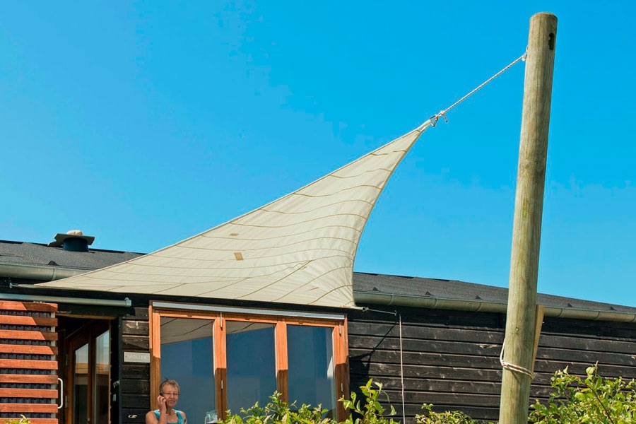 Puutarha Näin teet vahvan aurinkopurjeen Voit pidentää terassikautta purjekatoksella. Purje suojaa auringonpaisteelta ja pieniltä sadekuuroilta. Lue, miten voit tehdä kestävän purjekatoksen.