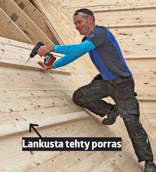 Osta tai vuokraa naulapyssy. Päivässä joutuu lyömään niin monta naulaa, että runkonaulaimen vuok-raaminen todella kannattaa. Säästät helposti viikon työn.