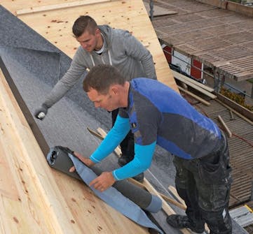 Kun kaikki laudat on naulattu kiinni, katolle levitetään huopa. Huopaa on monenlaista, mutta tämä malli on helppo asentaa, sillä se voidaan kiinnittää aluksi nitojalla. Huopa kiinnitetään kattoon lopullisesti tuuletusrimoilla ja ruoteilla.