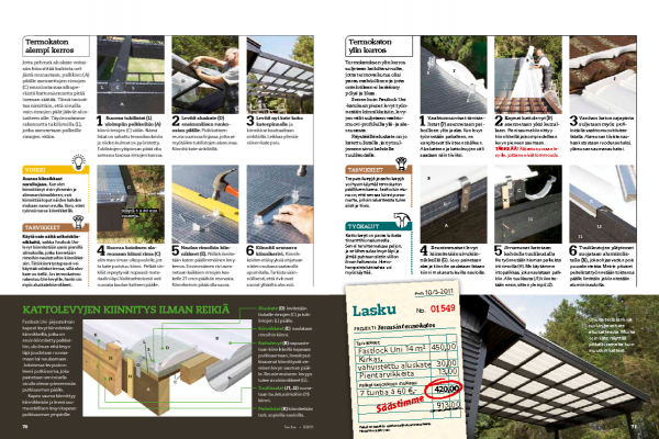 Vanhan katon rajapinta suljetaan myös profi-loidulla vaahtomuovitiiviste-listalla. Alareunan tiivistenau-haa kutsutaan ruodenauhaksi, yläreunan saumanauhaksi.
