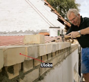 Itse uloke alkaa kolmannesta kerroksesta, jossa tiilet muurataan neljänneksen verran reunan ulkopuolelle. 4. ja 5. tiilikerros ylettyvät vielä neljäsosan tiilen leveydestä edellisrivin ulkopuolelle ja päättävät muurin harjan.