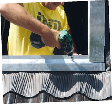 Lyhdyn sivut asennetaan paikoilleen Molempiin sivuihin asennetaan kaksi kierretankoa, minkä jälkeen sivut nostetaan paikoilleen karmin päälle. Kun ne ovat tarkasti linjassa yläkarmin sisäkulmien kanssa, ne kiinnitetään väliaikaisesti. Tämän jälkeen leikataan ja asennetaan kaksi suojapeltiä sivujen ja vanhan suojakauluksen väliin.