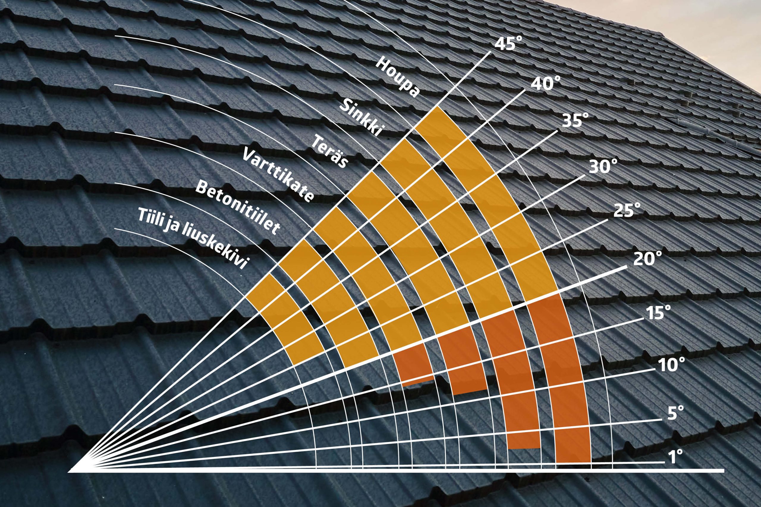 Vähimmäiskallistus: 20 - 45 astetta