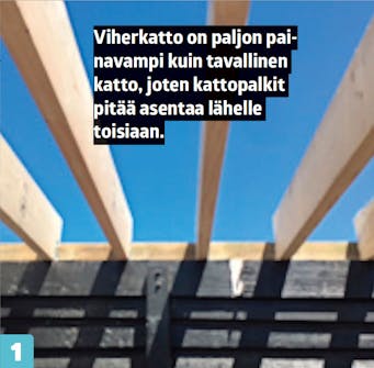 Katon kantava rakenne vaihtelee tilanteen mukaan. Viherkaton asentaminen sujuu helposti, jos saat työhön kaverin.