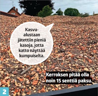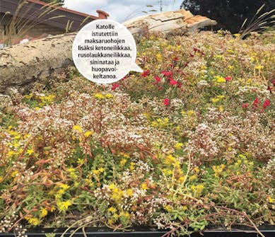 Tämä 24 neliön kokoinen viherkatto maksoi kaikkinensa noin 4000 euroa. Hinta sisältää raken nusmateriaalit, kasvit ja nosturin vuokran.