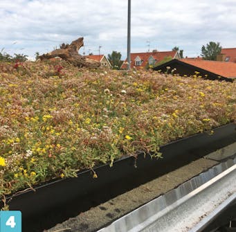 Nyt päästään projektin parhaaseen vaiheeseen eli viherkaton tekemiseen. Maksaruohomatot toimitetaan paikalle lavoilla, ja ne pitää istuttaa niin pian kuin mahdollista, jotta juuret eivät kuivu. Sovi kuljettajan kanssa, että hän pitää lavaa ilmassa kymmenen senttiä katon yläpuolella sen aikaa, että ehditte purkaa matot lavalta ja levittää ne paikoilleen. Asenna juurilta suojaava kerros ja levitä multa hyvissä ajoin, ennen kuin ruohomatot tulevat perille.