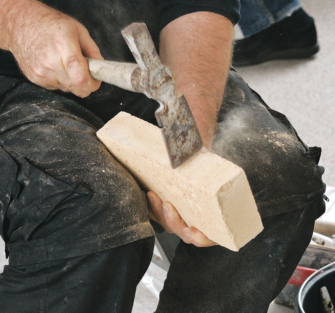 Lohkaise uudet tiilet niin, että saat ne limitettyä oikein uuteen muuraukseen. Mittaa tiili ja iske muurarinvasaran terävällä puolella pari kertaa kovaa kohtaan, josta haluat halkaista tiilen.