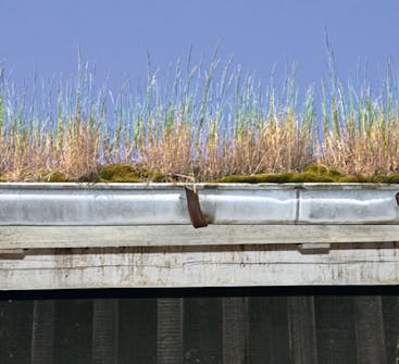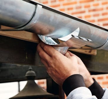 Räystäskourut pitää puhdistaa säännölli-sesti, jotta vesi pääsee liikkumaan vapaasti. Pidä huoli, etteivät kourut täyty hiekalla ja ettei niihin muodostu pieniä patoja oksista ja lehdistä.