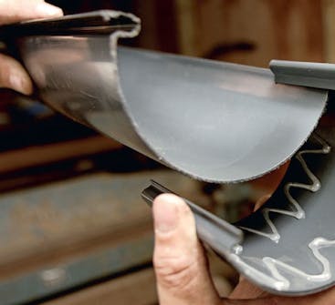 Katkaise uudet kourut mittaan ja asenna ne koukkuihin. Kourut vetävät enemmän vettä kuin vanhat. Kourut kasataan yhteen jatkokappaleilla, jotka tarttuvat molempiin kourunpaloihin.