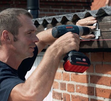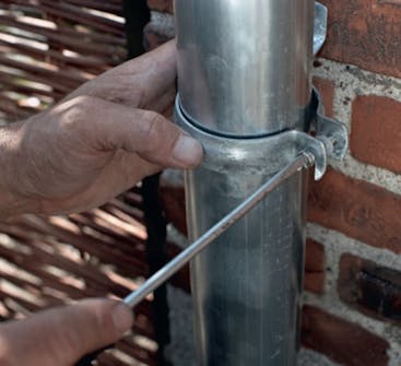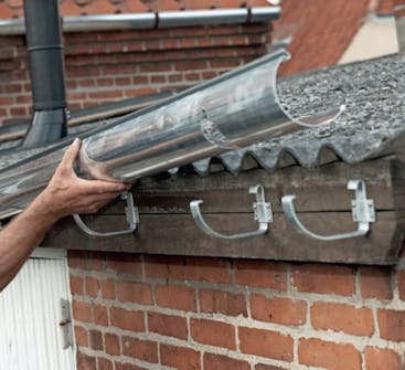 Poista vanhat kourut ja tarkista vanhat koukut huolellisesti. Kourujen pitää kallistua tasaisesti syöksytorvea kohti, jotta välille ei jää lammikoita. Väännä rautoja tarvittaessa ylös tai alas.