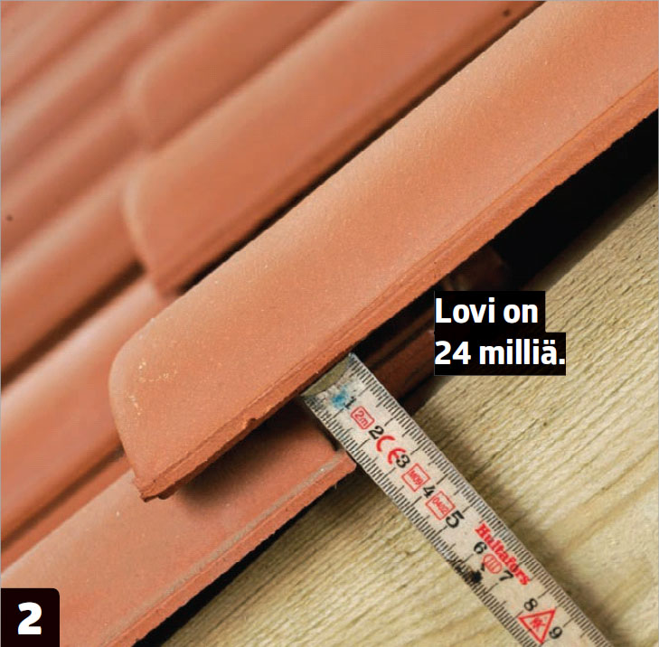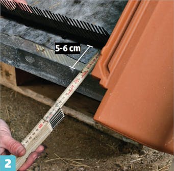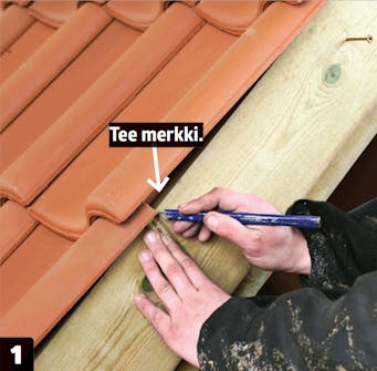 Mittaa aluksi tiilen alareunan ja korokkeen välinen etäisyys. Vähennä siitä noin kuusi senttiä tai sen verran kuin tiili yltää räystään yli.
