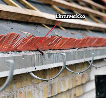 Lintuverkko. Lintuverkko on räys-tääseen kiinnitettävä suoja, joka estää pikkulintuja pääsemästä kattotiilien alle pesimään. Heikki ei halunnut nauloja kat-toon, joten hän kiinnitti lintuverkon siliko-nilla ja antoi sen kuivua kolme vuorokautta.