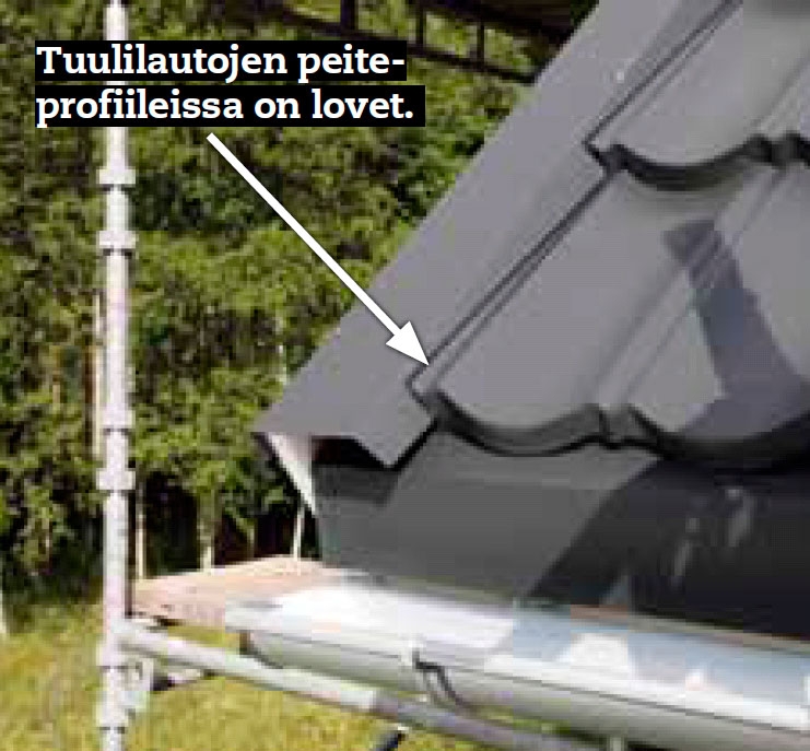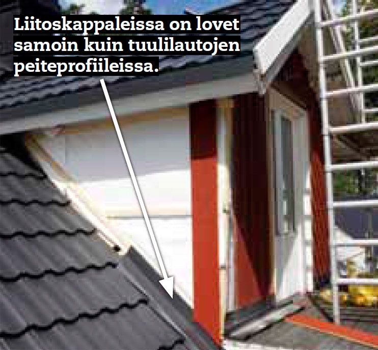 Kun koko katto on asennettu, katon ja tuulilautojen liitoskohdat tiivistetään. Tätä varten on olemassa erityisiä peiteprofiileja. Samaan tapaan tiivistetään mahdolliset lyhtyjen yms. liitoskohdat.