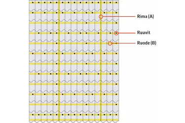 Viritä lanka lappeen poikki. Nosta lankaa hieman, jotta sen alle mahtuu pieni kapula. Tarkis-ta vastaavalla kapulalla, että kaikki rimat ovat yhtä korkealla.