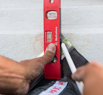 Pidä alumiinilistaa piippua vasten niin, että taite on pystyssä. Irtoreunuk-sen pitää sijoittua puoliksi tiivisteen päälle. Tee merkkiviiva, kuten kuvassa, vesivaa’an avulla sekä ylös että alas.