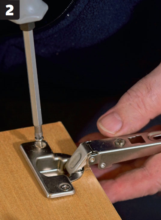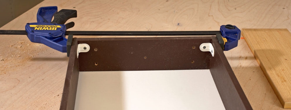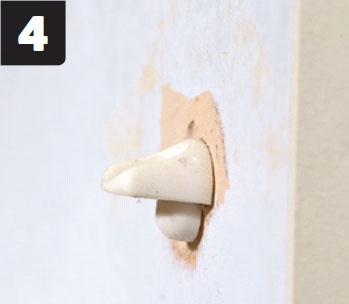 Laajenna hyllynkannattajan kuusi-millinen reikä 10-milliseksi ja tee siitä 10 milliä syvä. Käytä syvyysrajoitinta, jotta terä ei lipsahda kaapin läpi.