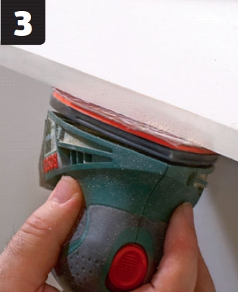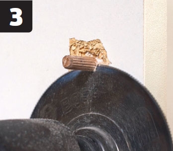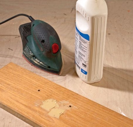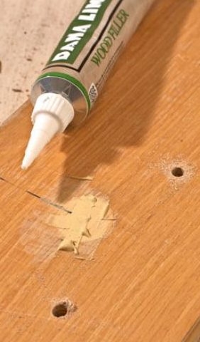 Leikkaa tappi poikki ja täytä kolot puutäytemassalla. Anna täytemassan kuivua ja tasoita paikka hiomapaperilla.