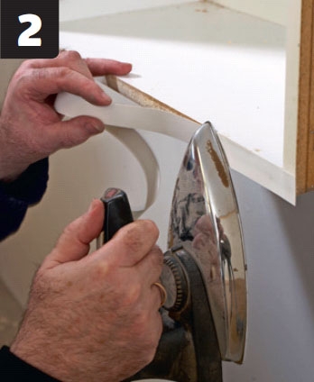 Reunanauhan tausta tarttuu kiinni kaappiin, kun nauhaa läm-mitetään silitysraudalla. Käytä keskilämpöä ja paina nauha kiinni reunaan. Liima kovettuu yhtä nopeasti kuin nauha jäähtyy.