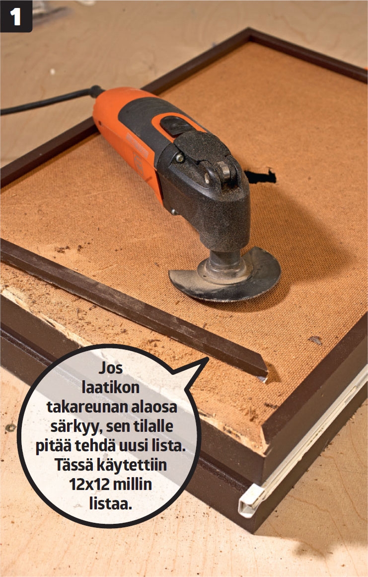 Vanhojen laatikoiden pohjat murtuvat tai särkyvät helposti. Näytämme, miten särkynyt laatikon pohja vaihdetaan uuteen.