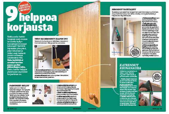 Kaappien ja laatikoiden ovet kuluvat väistämättä. Joskus melamiinipinnasta lohkeaa irti iso pala. Silloin koko ovi on pakko maalata. Melamiinin tai muun kovan ja kalvopintaisen materiaalin maalaaminen pitää valmistella juuri oikein.