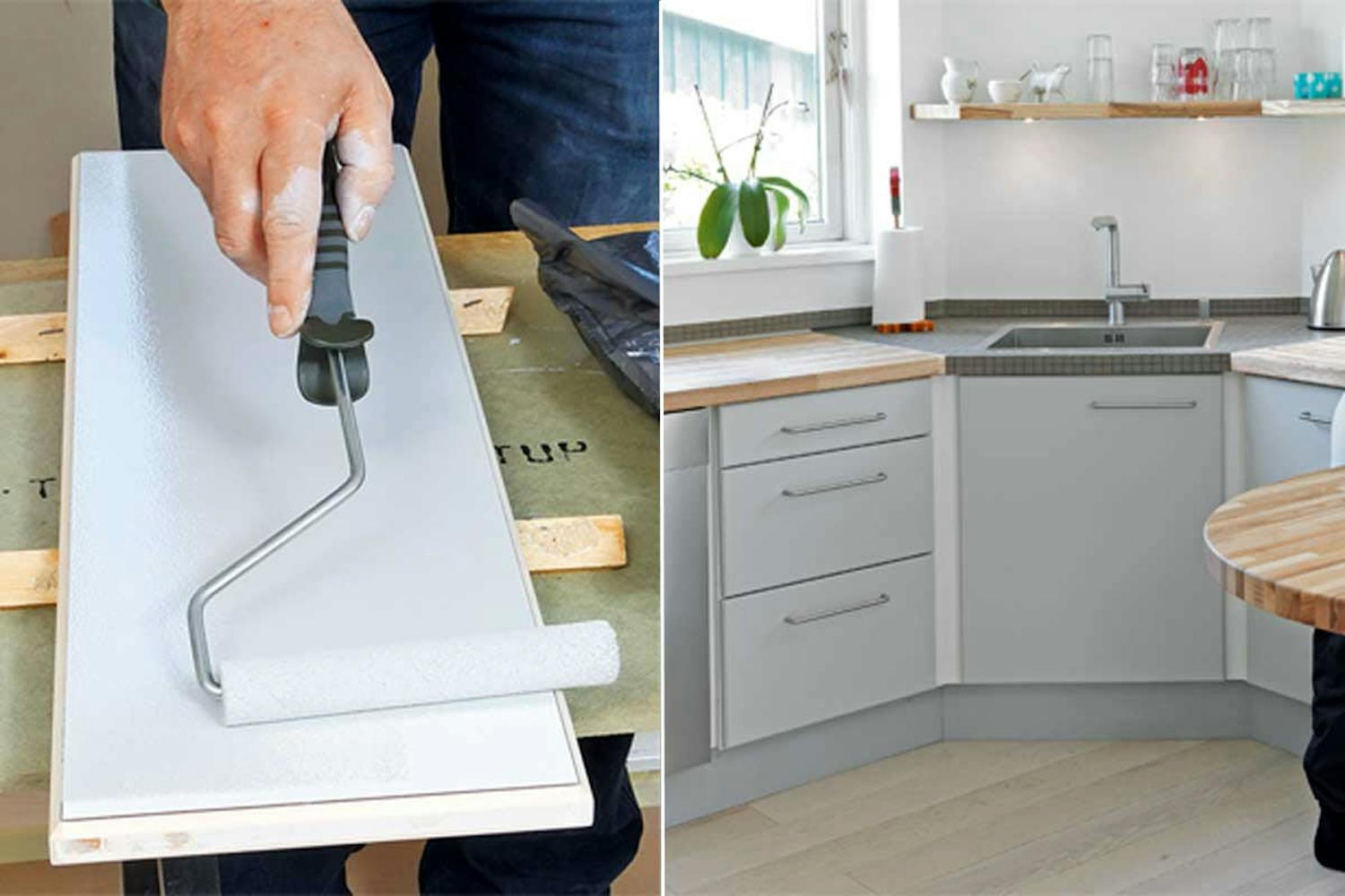 Keittiömme ei ole kovin vanha, ja se on kauniisti tehty. Kaipaamme kuitenkin uutta väriä sekä uusia työtasoja ja vetimiä. Voisimmeko maalata kaappien ovet ja laatikoiden etulevyt vai pitääkö niiden ruiskumaalaus jättää ammattilaisen tehtäväksi?