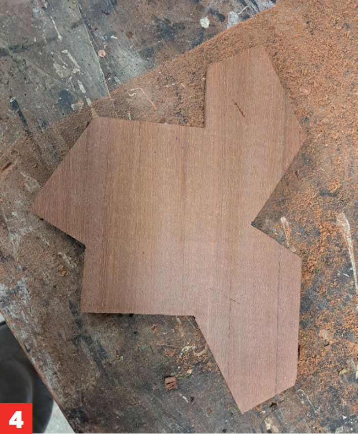 Ota kuviosta 3D-tuloste ja käytä sitä sapluunana palasten tekemiseen. Kiinnitä sapluuna levyyn teipillä, jotta se pysyy paikallaan sen aikaa, että saat leikattua palasen irti reunajyrsimellä.