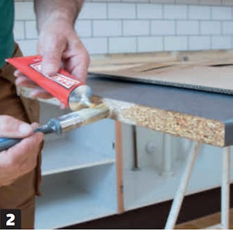 Levitä kontaktiliimaa levyn reunaan. Levitä liimaa pensselillä, kunnes se peittää tasaisesti koko levyn reunan.