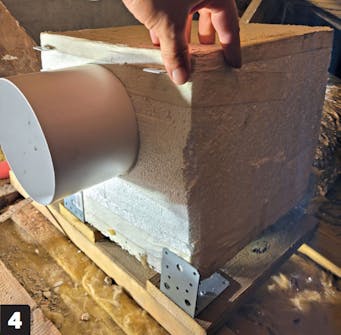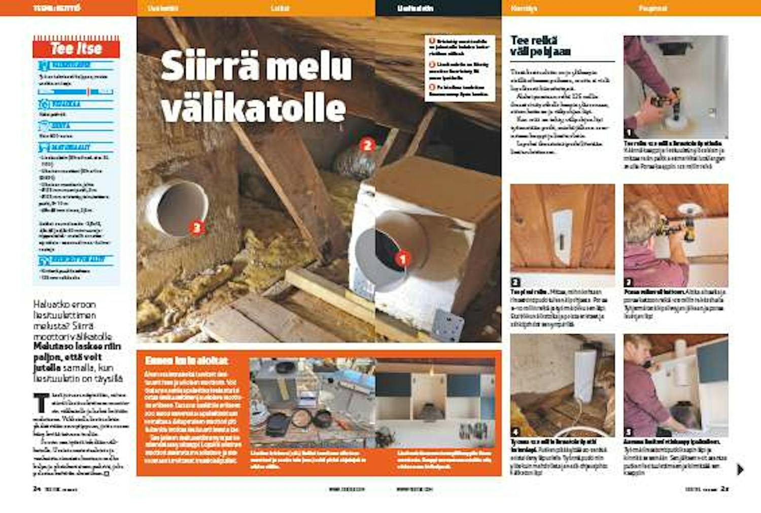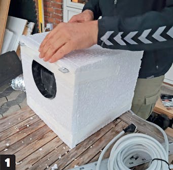 Eristä moottori, jotta kosteus ei tiivisty sen sisään kylmällä välikatolla. Tässä käytetään styroksia, joka liimataan koneen päälle asennusliimalla.
