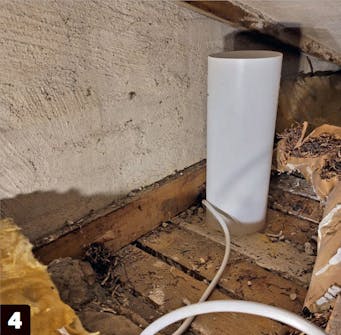 Työnnä 125 millin ilmastointiputki katon läpi. Putken pitää yltää 20 senttiä eristeiden yläpuolelle. Työnnä putki niin ylös kuin mahdollista ja vedä ohjausjohto välikaton läpi.