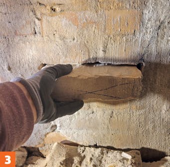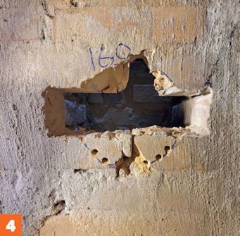 Irrota tiili varovasti. Älä heitä sitä pois, sillä tarvitset tiilenpaloja reiän umpeen muuraamiseen.