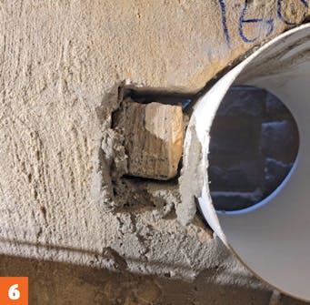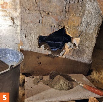 Tuki reikä laastilla ja tiilenpaloilla. Pane reikään aluksi 125 millin muoviputki ja täytä tyhjä tila laastilla ja tiilenpaloilla. Muista täyttää reikä kokonaan laastilla.