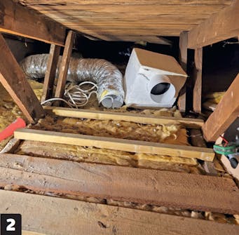 Tee pieni reikä. Mittaa, mihin kohtaan ilmastointiputki tulee välipohjassa. Poraa 8-10 millin reikä ja työnnä tikku sen läpi. Etsi tikku välikatolta ja poista eristeet ja sähköjohdot sen ympäriltä.