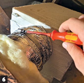 Liitä putki moottoriin. Putki koostuu kahdesta alumiinikuoresta ja niiden välissä olevasta mineraalivillasta. Vedä sisäkuori varovasti muoviputkien päälle ja kiristä ne yhteen metallivanteilla.