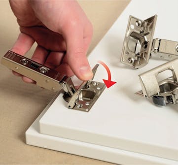 Saranan oviosat asennetaan paikoilleen oviin esiporattuihin reikiin ja napsautetaan kiinni taitettavasta levystä. Jos saranoissasi ei ole tätä kätevää kiinnitystoimintoa, saranan voi ruuvata kiinni siihen kuuluvilla ruuveilla.