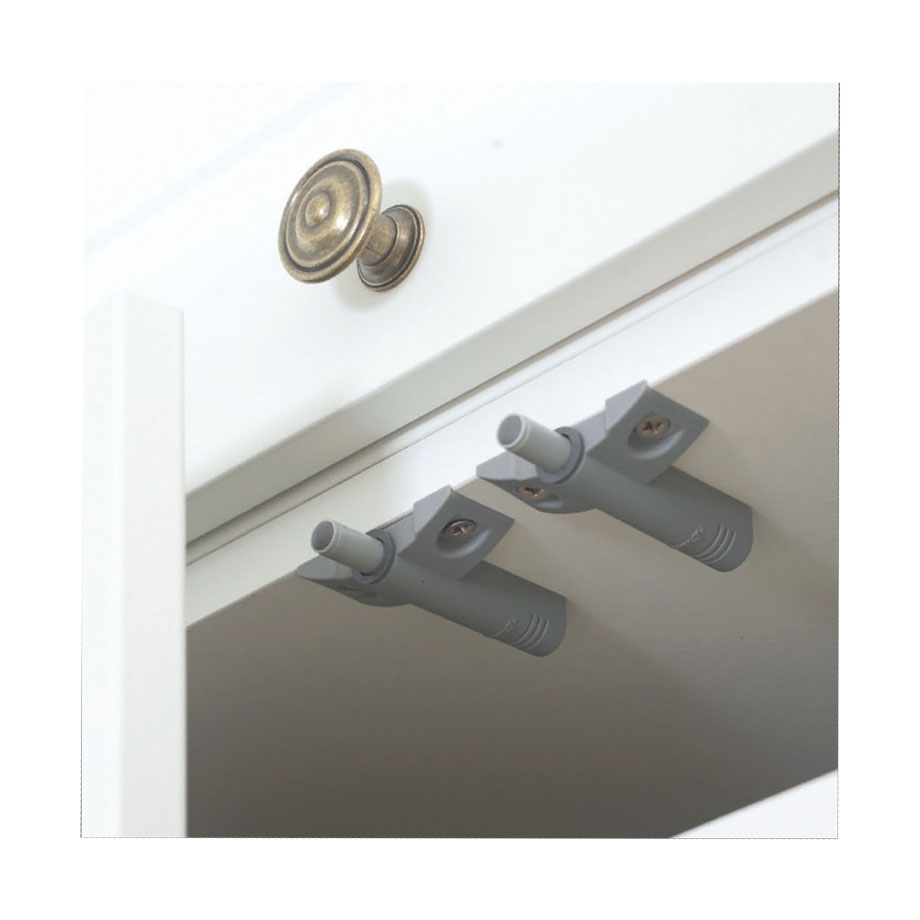 Kiinnitä kaksi kaapinhelaa kaapin sivuun esiporattuihin reikiin. Kiristä ruuvit kunnolla, mutta varo, ettet kierrä niitä liikaa, jottei levy lohkea.