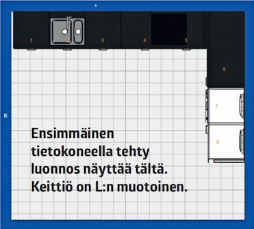 Ohjelmaa on suhteellisen helppo käyttää. Kun suunnitelma on kutakuinkin valmis, sitä kannattaa muo-kata paremmaksi tavarata-lon henkilökunnan kanssa. Keittiösuunnittelijat osaavat paitsi käyttää ohjelmaa, myös neuvoa parhaat ratkaisut jokai-seen keittiöön.