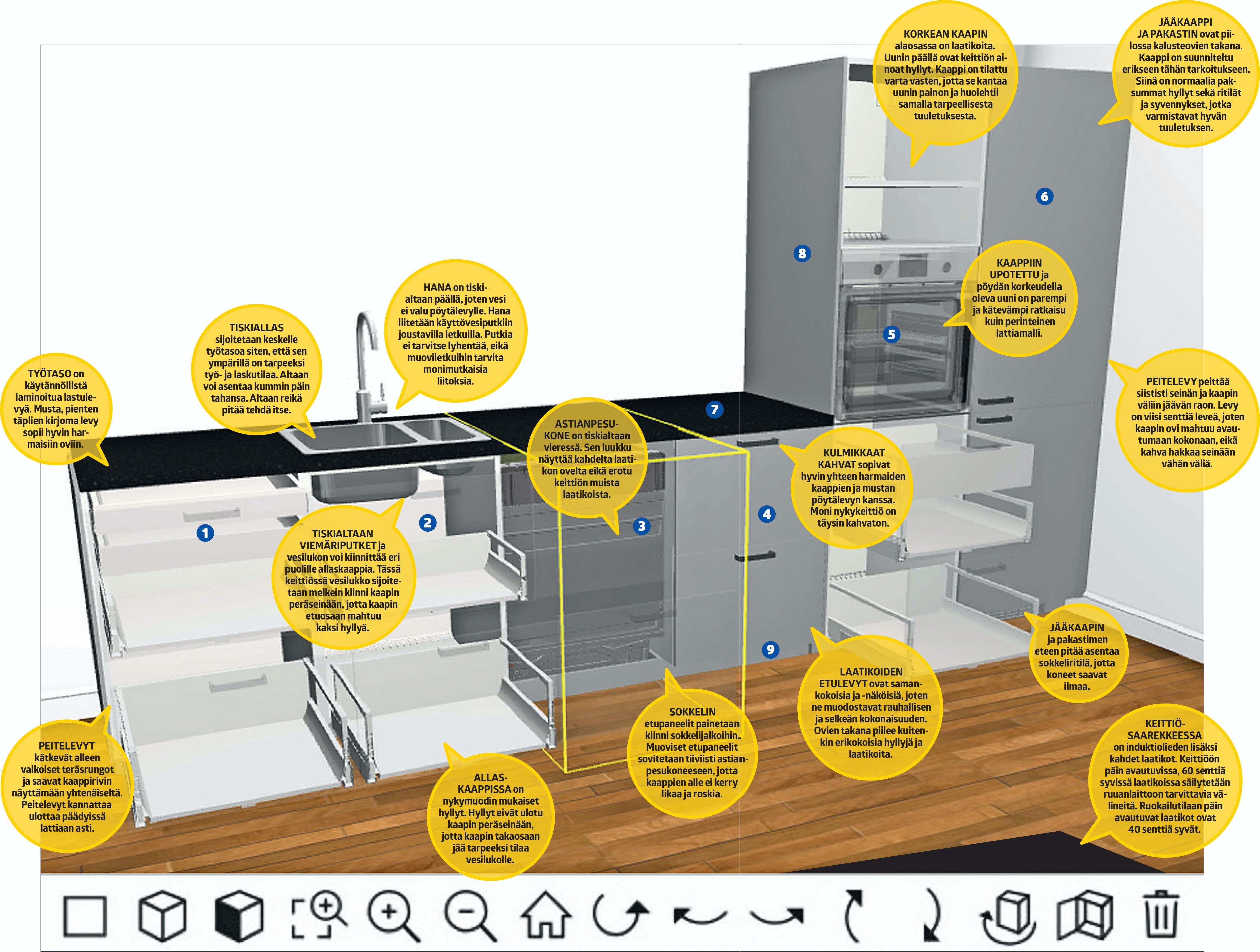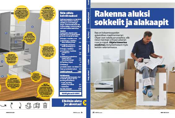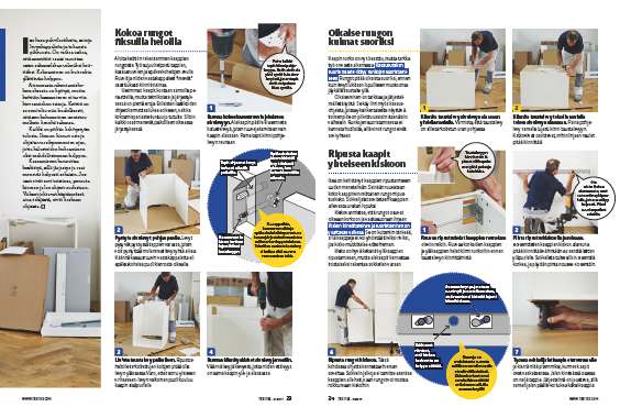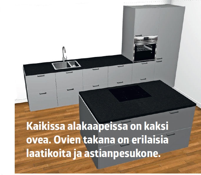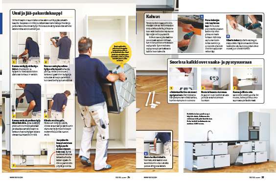 Ikea on kokoamisoppaiden epävirallinen maailmanmestari. Ohjeet ovat todella perusteellisia, sillä niissä mainitaan erikseen jokainen ruuvi ja nippeli. Ohjeita kannattaa noudattaa yksityiskohtaisesti myös keittiön rakentamisessa.