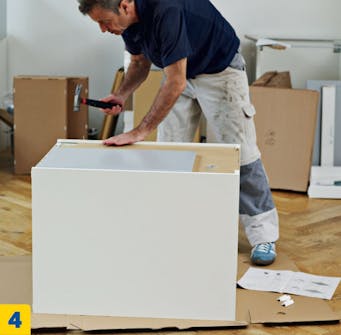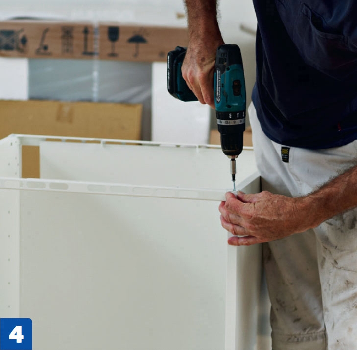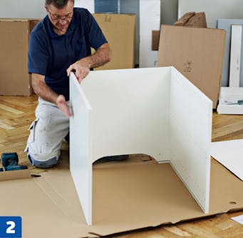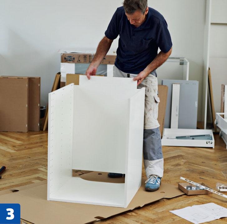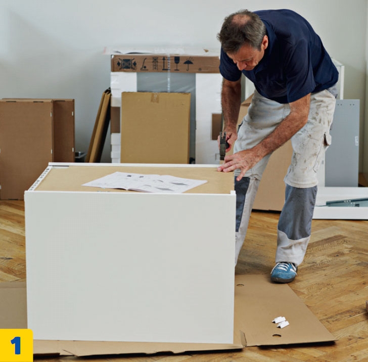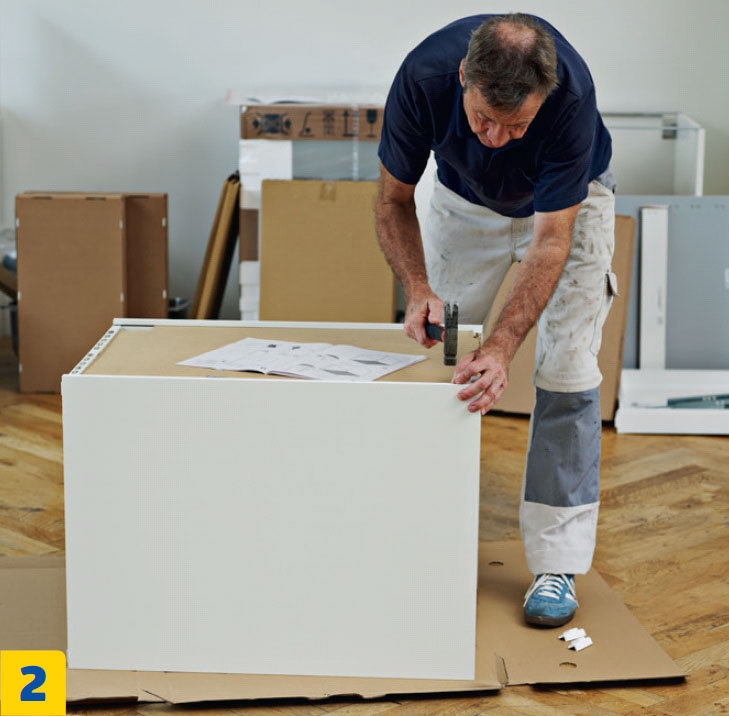 Seuraavaksi kaapit rakennetaan valmiiksi. Ohjeita kannattaa noudattaa huolellisesti tässäkin vaiheessa. Lue ohjeet läpi, ennen kuin aloitat keittiön viimeistelyn.