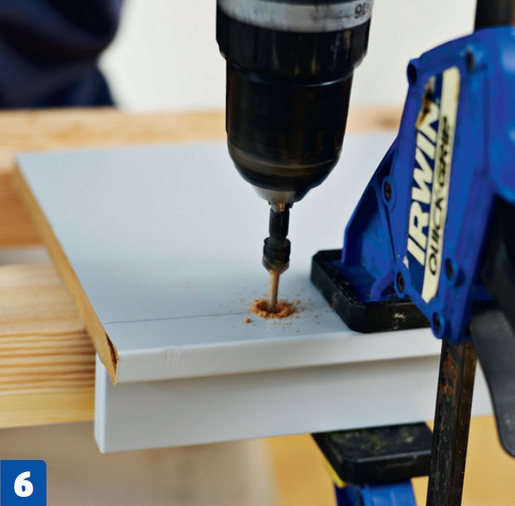 Sahaa peitelevystä noin 20 senttiä leveä pala ja kiinnitä päädyn peitelevy siihen. Poraa reiät valmiiksi, etteivät ruuvit riko levyjä.