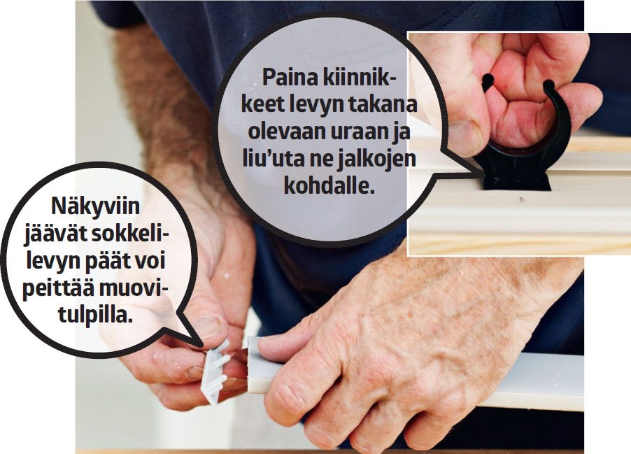 Kiinnitä sokkelin peitelevyt jalkoihin