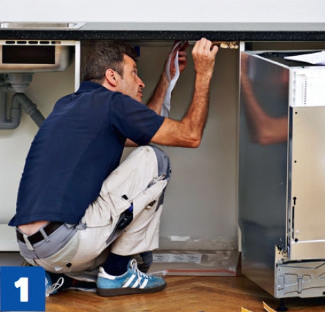 Työnnä kone pöytälevyn alle ja kiinnitä se paikalleen. Liitä putket oikeisiin paikkoi-hin ja virtajohto pistorasiaan. Säädä kone vaakasuoraan jaloilla.