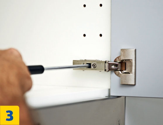 Käännä ja liikuta ovia saranoiden säätöruuveilla. Ovi nousee, laskee ja liikkuu sivu-suunnassa portaattomasti.