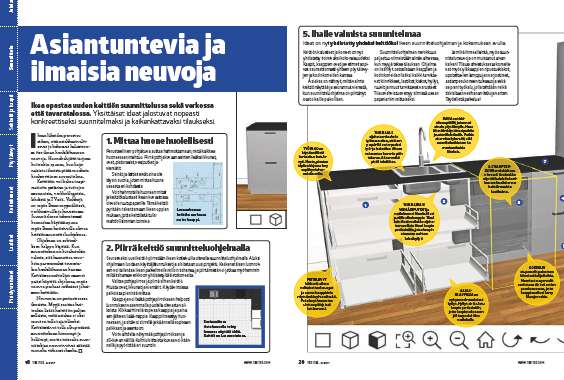 Ikea opastaa uuden keittiön suunnittelussa sekä verkossa että tavaratalossa. Yksittäiset ideat jalostuvat nopeasti konkreettiseksi suunnitelmaksi ja kaikenkattavaksi tilaukseksi.