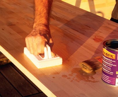Levyt käsitellään huolellisesti, jotta ne kestävät likaa ja vettä mahdollisimman hyvin. Se kannattaa tehdä ennen osien sahaamista, sillä isojen pintojen käsittely on helpompaa.