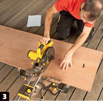 Sahaa kaappien reunat ja pohjat. Tässä käytetään upotussahaa ja ohjainkiskoa, joilla on helppo sahata suoria linjoja. Voit käyttää myös käsisirkkeliä ja suoraa lautaa.